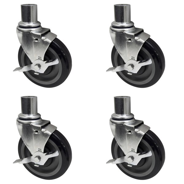 5-inch Universal Wire Shelving Casters, Polyurethane Wheel, Brake, 300lb Cap, Acid Resistant, 4PK
