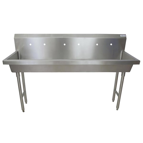 72" Freestanding Three Station Handwash Sink, 8" O.C. Splash Mount