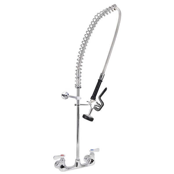 Optiflow Pre-Rinse Assembly with 8" O.C. Splash Mount. Includes 44" Stainless Steel Braided Hose (Triple-Ply @300 Psi), 12" Wall Bracket, Integral Check Valves,1/2" Female Inlets, 1/4 Turn Ceramic Valves. Assembly is Lead Free, ANSI/NSF 61.