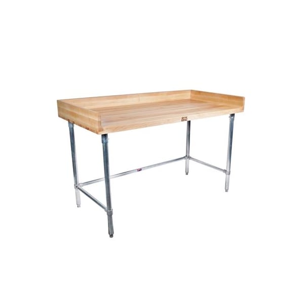 Hard Maple Bakers Top Table W/Galvanized Open Base, Oil Finish 96LX36W