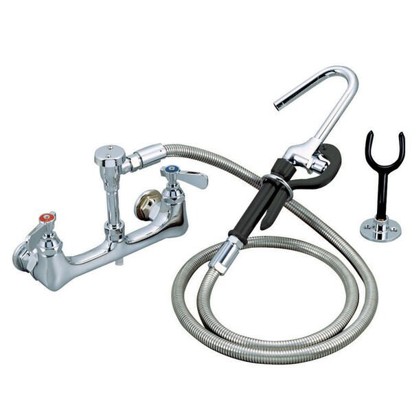 Optiflow Pot Filler Assembly, 8" O.C. Splash/Wall Mount, 72" SS Braided Hose