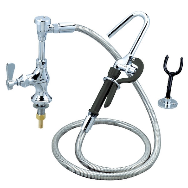 Optiflow Pot Filler Assembly with Deck Mount. Includes Single Valve, 72" Stainless Steel Braided Hose, Integral Check Valves, Hooked Nozzle, Wall Hook, Vacuum Breaker. Tested and certified by NSF.