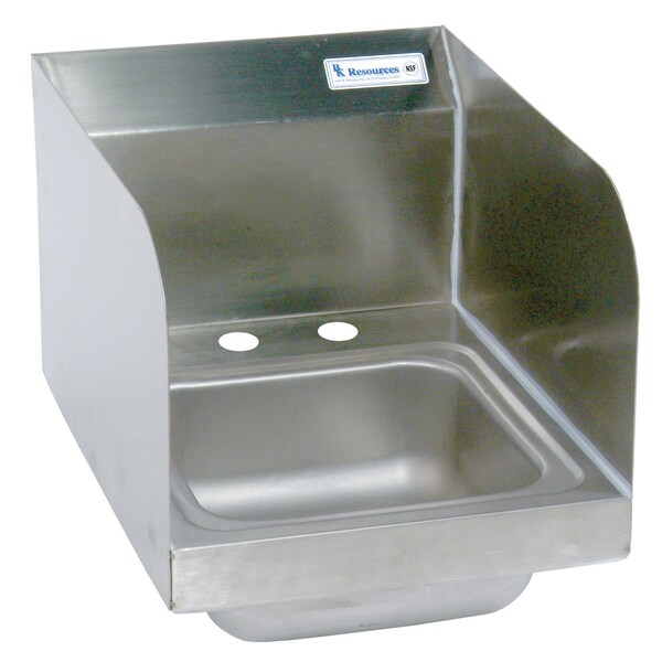 BK Resources wall-mount sink, the Perfect 304 Stainless Steel Space Saver Hand Sink With Side Splashes for use in a kitchen, bar, restaurant, laundry, school, hospital, hotel, park, or any other commercial setting, Sink Only, 9"W X 9"D X 4-3/8"Deep Bowl Size, 1-7/8" Basket Drain With Crumb Cup, 4" OC Splash Mount, NSF