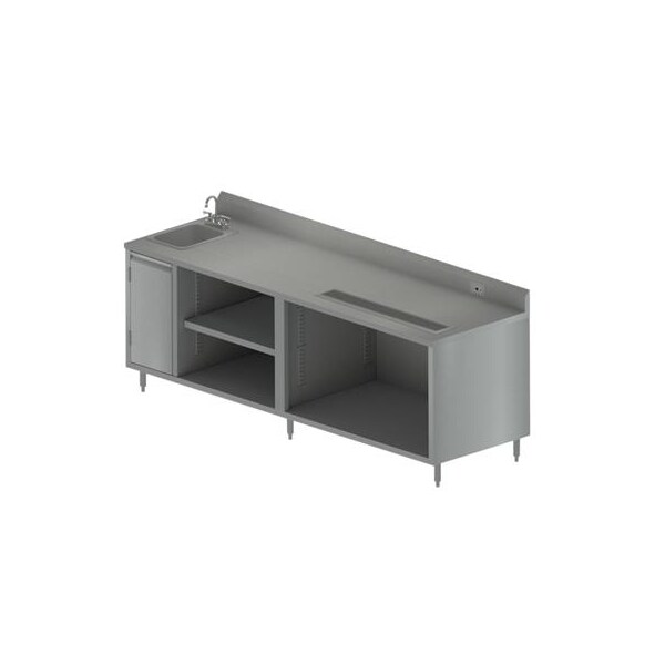 Stainless Beverage Table, Sink On Left, 5"Riser Electric Outlet 30X96
