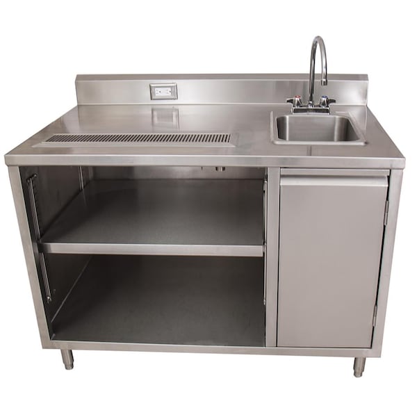 Stainless Beverage Table, Sink On Right, 5"Riser Electric Outlet 30X72