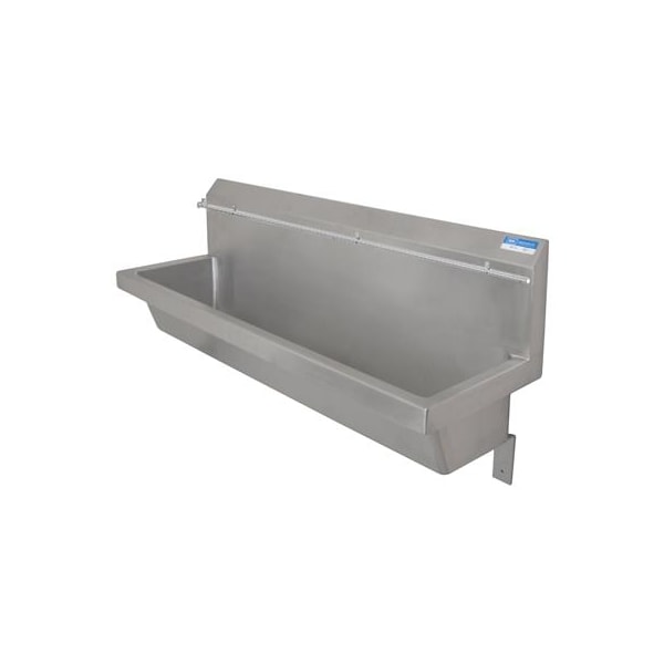 60" Urinal is made from 14 gauge T-304 stainless steel and has a wall mount design. Full length sloping backsplash with flush pipe makes this urinal perfect for high traffic areas.Wall mounting brackets and basket drain included.