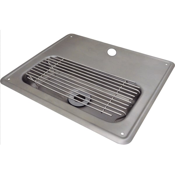 This glass filler water station sink measures 12 11/16"Wx10-3/4". It is made from 20/304 stainless steel. Tested and certified by NSF.