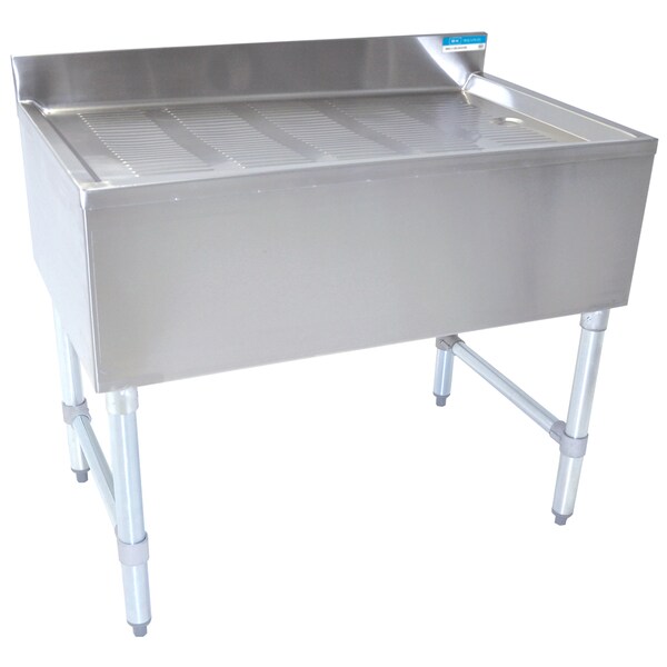 BK Resources Underbar Drain Board, 18"W X 21-1/4"D X 32-1/2"H, 18/304 Stainless Steel, Stamped Drainboard, Drain Included 1-7/8" Flange X 1-1/2" L Chrome Plated Brass Drain, Stainless Steel Legs & Side Crossbracing With Adjustable Plastic Bullet Feet, NSF certified