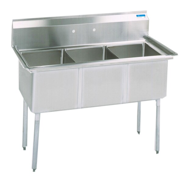 Three Compartment Sink 15 in x 15 in, 3, 2, Free Standing, Stainless Steel