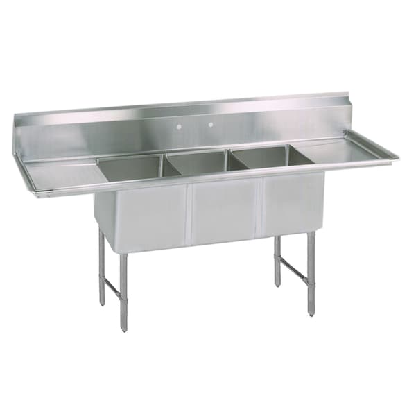 Three Compartment Sink 18 in x 24 in, 3, 2, Free Standing, Stainless Steel