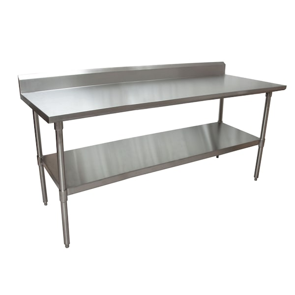 This Work Table measures 72"Wx30"D. The top is made from 18/430 Stainless Steel which is reinforced with channels and has turndown edges on the front and sides. The 5" rear riser prevent objects from sliding off. Table legs are made from stainless steel and are 1 5/8" in diameter. The stainless steel undershelf and plastic bullet feet are adjustable. This table is tested and certified by NSF.