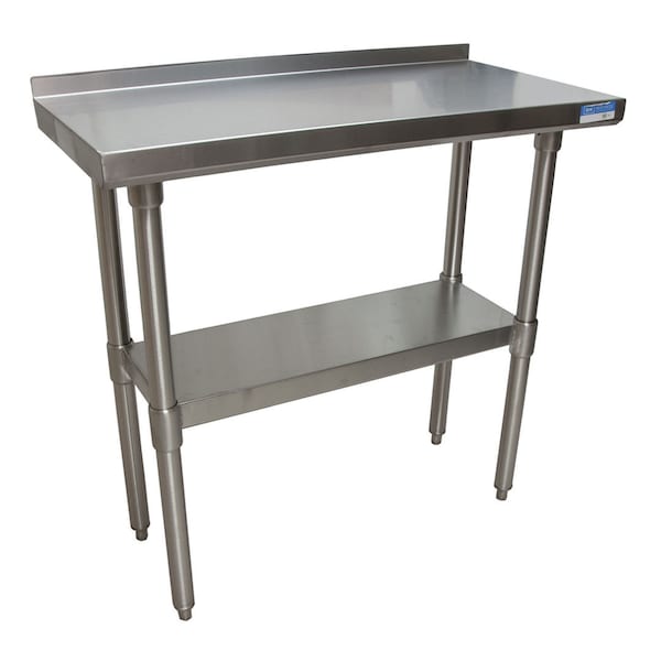 Work Table Stainless Steel With Undershelf, 1.5" Rear Riser 48"Wx18"D