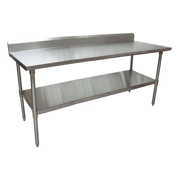 Work Table Stainless Steel With Undershelf, 5" Backsplash 72"Wx24"D