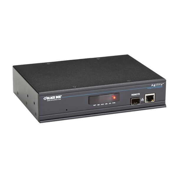 Video: (1) DVI-D (Female); Audio: 3.5-mm Audio (Female), Input and Output; USB Peripherals: (4) USB Type-A (Female); Serial: (1) RS-232 DB9 (Male) AUX Port; Power: (1) 2.5-mm DC Jack; Network: (1) RJ45 (Female); (1) Gig Network (CAT6 recommended); Other: (1) Blank SFP slot f