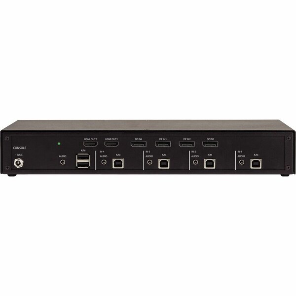 KVM Switch, NIAP 4.0 Certified - 4-Port, Single-Monitor, DisplayPort with MST, HDMI Out, 1x 12 VDC Wallmount Supply (ICP36-120-3000) with US, EU, UK, and AU adapter clips, 1x Set of 4 rubber feet (already be attached), 1x Quick Start Guide