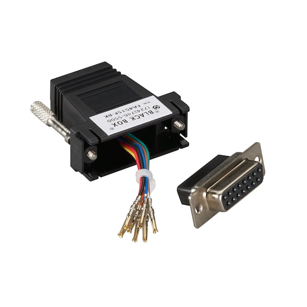 Black Box Modular Adapter Kit - DB15 Female to RJ45 Female with Thumbscrews, Black - 1 x RJ-45 Serial Female - 1 x 15-pin DB-15 RS-232 Serial Female - Phosphor Bronze Contact - Black