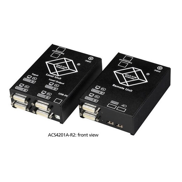 Local Unit: Keyboard and Mouse: (1) USB Type-B (Female); Monitor: (4) DVI-D (Female); Interconnect: (2) RJ45; Remote Unit: Keyboard and Mouse: (2) USB Type-A (Female); Monitor: (2) DVI-D (Female); Interconnect: (2) RJ45