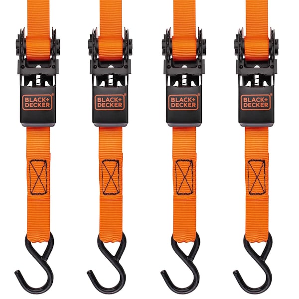 BLACK+DECKER900 lb. break strength ratchet tie- down straps feature weather resistant ratchet components and straps to easily and safely secure cargo load.