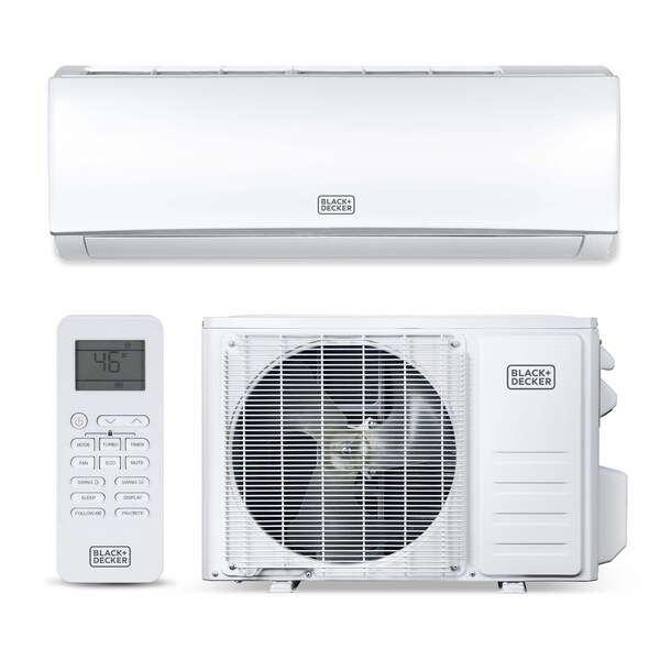 BLACK+DECKER 11,500 BTU Smart Mini Split Air Conditioner with Heat, an innovative solution in the realm of split-system air conditioners. Designed for optimal performance, this mini split air conditioner offers an exceptional blend of cooling, heating, dehumidification, and ventilation functionalities, making it an indispensable addition to your home or office. Equipped with a state-of-the-art inverter compressor, this split unit AC and heat system delivers precise temperature control and quieter operation. Its ductless design makes it a versatile wall-mounted air conditioner, ideal for spaces where traditional ductwork is not feasible. Stay connected with the BLACK+DECKER mini split AC/heating system, which features advanced Wi-Fi connectivity. Control the unit effortlessly with a smartphone or other smart devices via the app available on iOS or Google Play store. Also allows voice control with Amazon Alexa or Google Assistant. This smart air conditioner ensures seamless integration into your smart home ecosystem, providing convenience at your fingertips. The unit comes with a full-function remote control, allowing you to adjust settings such as the 4-in-1 air conditioner heater dehumidifier and fan modes, 4 fan speeds, and the 24-hour timer. Its electronic controls with a digital display offer intuitive operation, while the sleep mode ensures comfort throughout the night. Experience superior airflow with the large vented outlet, featuring both vertical and horizontal air swing for optimal air distribution. R32 refrigerant. Removable washable filter. Please note that professional installation is required for this split AC unit. Mini split includes 16.4ft L refrigerant piping and a 3.2ft L drain hose for installation. 115V/60Hz.