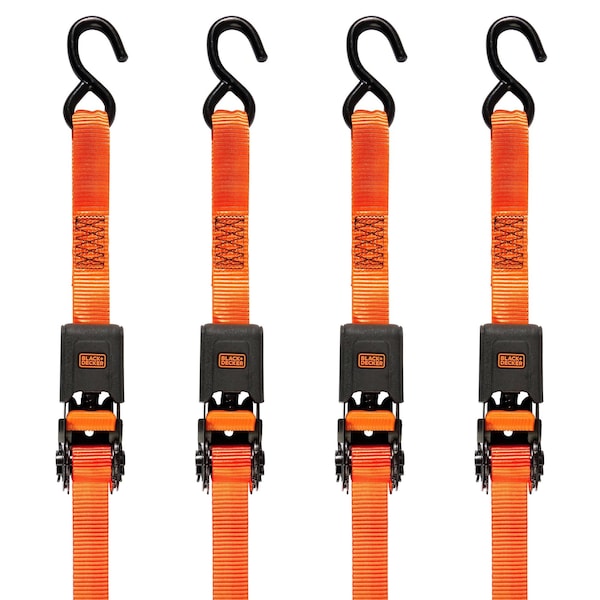 The BLACK+DECKERratchet strap tie-down 4 pack set is great to have handy for hauling small items to keep them safe and secure. Easy push down operation allows for quick and easy strap adjustments.
