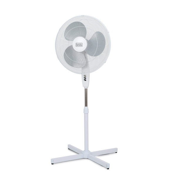 The BLACK+DECKER 18-inch pedestal fan features 3 large fan blades with 3 fan speed settings to provide optimal air circulation. Ideal fans for home, office, living room fan, garage fan, standing fan for bedroom and more. Our outstanding fans oscillating comes with 3 speed settings to ensure you get the airflow you desire: Low, Medium & High. Additionally, our floor fans offer 60-degree oscillating function to enhance comfort, distribute air evenly throughout a room and improved air cooling. Also included with this indoor fan is an adjustable 30-degree vertical tilt angle adjustment and height adjustment control knob. Height adjusts from 44.88in to 51.96in H overall. There's no better feeling than a cool breeze at your desk, home or office that delivers such outstanding personal cooling. Improve your air circulation wherever and whenever with our fantastic BLACK+DECKER 18-inch oscillating fans for indoors. With dimensions of 27.6in x 27.6in x 52in and a weight of only 7.3 lbs., our room fans include a sturdy X-base, which allows you to place it easily on virtually any flat floor surface. Easy assembly.