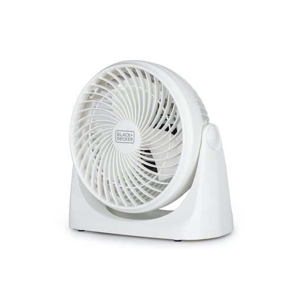 This BLACK+DECKER 7'' turbo fan is the perfect addition just about anywhere in the house where increased air flow is a necessity. Use as a garage fan, small desk fan, home office desk fan, and more. With compact dimensions of 10.7'' x 10.9'' x 6.1'' and weighing only 3 lbs., our quiet desk fan is easily portable. Choose from three desktop fan speeds -- Low, Medium, and High -- so you can control just how much air you want. When it comes to quality fans that blow cold air, ours has an adjustable 90Deg tilt feature to precisely direct the airflow. Place on a large desk, small desk, or office table and simply select your settings on the back of the device for optimal air circulation with minimal effort. A 6 ft. power cord allows for easy installation. When it comes to top tier portable fans that blow cold air and truly quality desk fans, our 7'' personal fan is your number one choice. Say goodbye to sweltering days at the office and at home and hello to a cool, comfortable environment. Perfect for hot summer months, our portable fan is your solution to a breezy day.