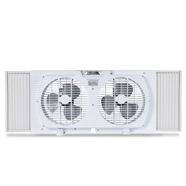 This BLACK+DECKER 9'' twin window fan is ideal for enhanced indoor air circulation in any room in your home -- whether it's your bedroom, bathroom, kitchen, attic or elsewhere in your home. With convenient dimensions of 23.8'' x 4'' x 12.6'' and a weight of only 4.5 lbs., our dual horizontal window fan with rust-resistant construction can easily accommodate any window from 22.5'' - 33'' Wide. This twin electric fan has 2 speed settings with mechanical controls, as well as a carrying handle for seamless transportation. Additionally, our outstanding twin window fan comes with accordion expanders that range from 22.5'' - 33'' as well as removable legs to accommodate the perfect window fit. Dual 9'' poly fans are designed for maximum airflow. Removable legs allow you to transition from window to table or floor fan with ease. Our dual room fan is easy to install, requiring minimal tools and effort. Secure in place without any additional support! Our twin window fan can be manually reversed with a convenient dual-sided control dial to allow convenient exhaust fan functionality. Simply turn over the fan to convert to an exhaust for musky or stagnant air. Save on energy bills with a constant breeze and indoor temperature regulation thanks to this outstanding twin small window fan. Simply remove your window screen and install your new BLACK+DECKER 9'' twin window fan and enjoy the cool and comfortable temperature and breeze.