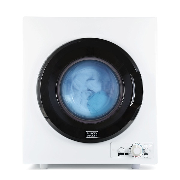 Dryer, Power Source Electric, Dryer Capacity 3.5 cu ft, Color White, Number of Dryer Cycles 5, Overall Height 27 1/2 in, Overall Width 23 5/8 in, Overall Depth 21 1/2 in, Current 7 A, Voltage 120V, Coin-Operated No, Stackable Yes, Energy Star Compliant No, Features Portable