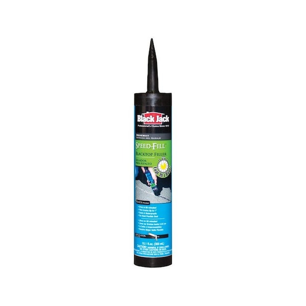 Black Jack« Speed-Fill blacktop filler is a fast drying rubberized compound for use on the repair of asphalt roads driveways pavements expansion joints and walkways. Speed-fill blacktop filler provides a long term flexible repair on cracks and joints up to 1 inch wide and the quick-dry formula speeds up seal coating jobs. Black Jack speed-fill also seals foundation walls and other pavement surfaces. Speed-fill blacktop filler dries to dark black finish.