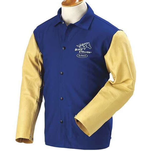 Closure Type Metal snaps, Color Royal Blue/Tan, Length 30 In., Material 100 Percent 9 oz Flame-Resistant Cotton Body and Grain Pigskin Sleeves, Size 4XL, Welding Jacket