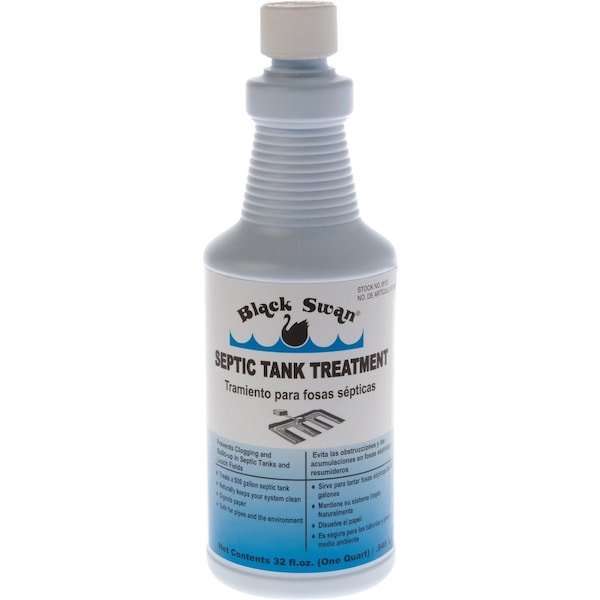 Black Swan Septic Tank Treatment. A liquid bacterial blend that prevents clogging and build-up in septic tanks and leach fields. Helps break down sewage waste in septic tanks. Contains no harsh chemicals that can harm your septic system. Prevents clogging of inlets and outlets that lead to unpleasant odors and overflow. An excellent preventative maintenance treatment.