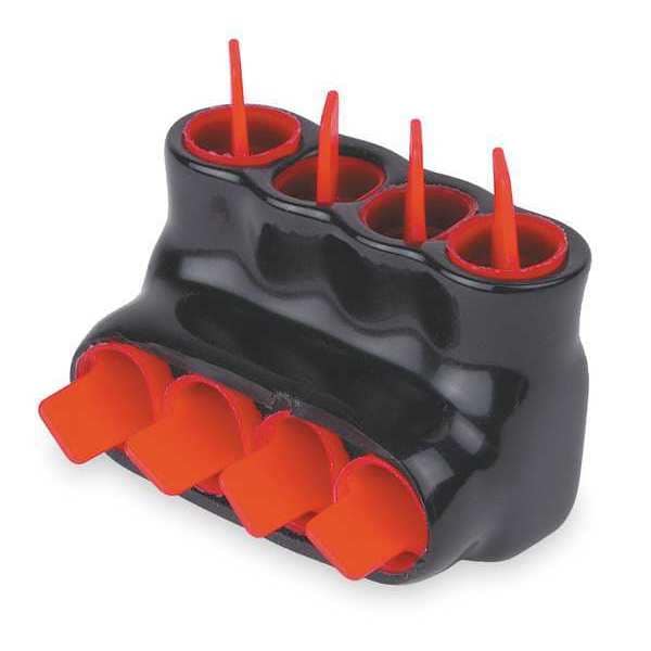 Multitap Connector, Body Material Aluminum, Color Black, For Conductor Material Aluminum, Copper, Copper-Clad Aluminum, For Stranded Copper Wire Size - Minimum 14 AWG, For Stranded Copper Wire Size - Maximum 4 AWG, Head Style Hex, Hex Size 3/16 in, Insulation Material PVC, Maximum Operating Temperature 194 Degrees F, Maximum Voltage 600 V, Number of Ports 4, Standards CSA 6591, UL E9809, Compatible with Product Type Aluminum Conductors, Copper Conductors, Copper-Clad Aluminum Conductors