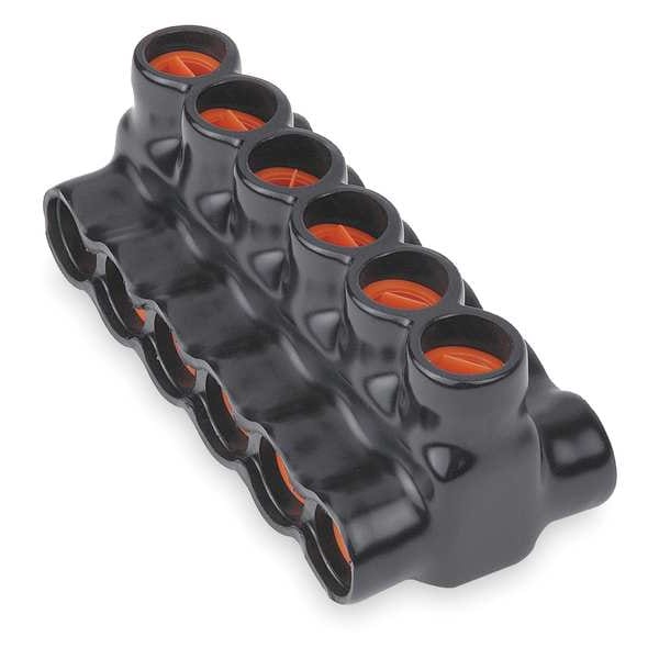 Insulated Multitap Connector, Body Material Aluminum, Color Black, For Conductor Material Aluminum, Copper, For Stranded Copper Wire Size - Minimum 10 AWG, For Stranded Copper Wire Size - Maximum 350 kcmil, Head Style Hex, Hex Size 3/16 in, Insulation Material PVC, Maximum Operating Temperature 194 Degrees F, Maximum Voltage 600 V, Number of Ports 6, Standards CSA 6591, UL E9809, Compatible with Product Type Aluminum Conductors, Copper Conductors, Copper-Clad Aluminum Conductors