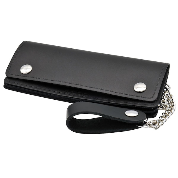 Leather Chain Wallet Biker Style Bifold USA Made w 12-inch Chain