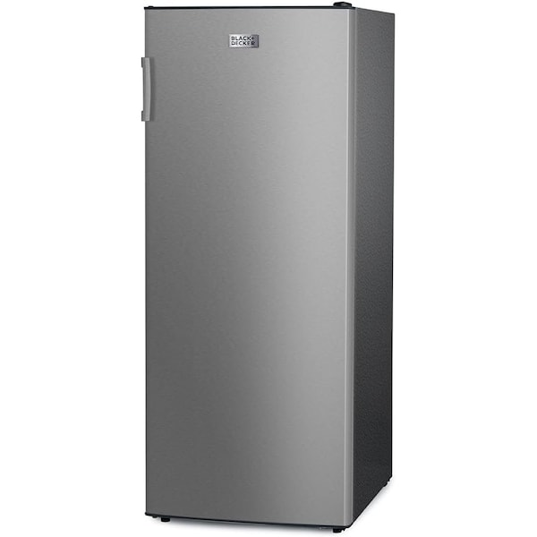 The BLACK+DECKER 8.5 Cu. Ft. Upright Freezer, a simple solution for any home seeking optimal food preservation space. With its spacious 8.5 cu. ft. capacity, this stand up deep freezer for home use is meticulously designed to accommodate your food freezing needs, from bulk groceries to seasonal specialties. Experience precise cooling with the mechanical temperature control feature, allowing you to maintain your food items at the ideal temperature. The three full-width wire shelves and four full-width door bins provide optimal storage options, making it easy to organize and access your frozen goods. The freezer is equipped with a manual defrost system, ensuring longevity and optimal performance. The grip handle design offers ease of access while the adjustable leveling legs provide stability on any surface, making it an excellent choice for a garage freezer setup. With the R600a refrigerant, this freezer operates efficiently, minimizing environmental impact. The reversible door feature adds to its adaptability, allowing you to configure the freezer upright to suit any space layout. Its sleek and modern design ensures it blends seamlessly into any home environment, whether placed in the kitchen or as a garage freezer upright.