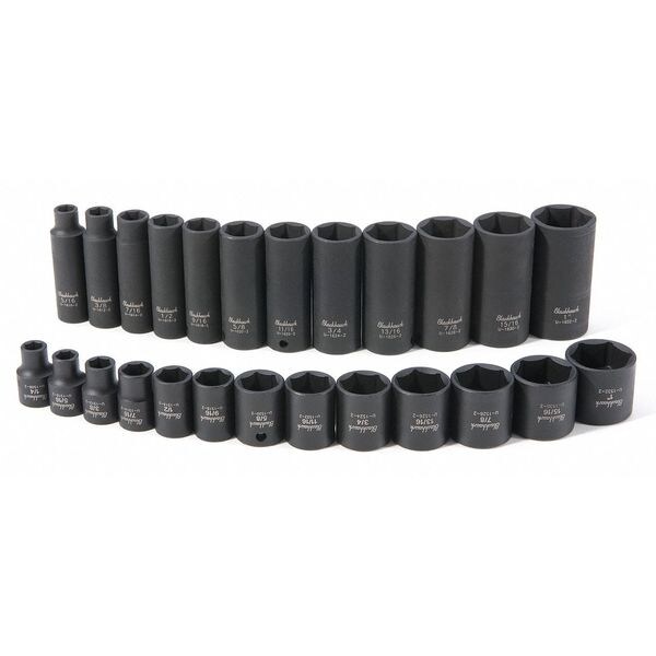 Blackhawk By Proto 3/8 in Drive Impact Socket Set, SAE, 25 pcs 97005