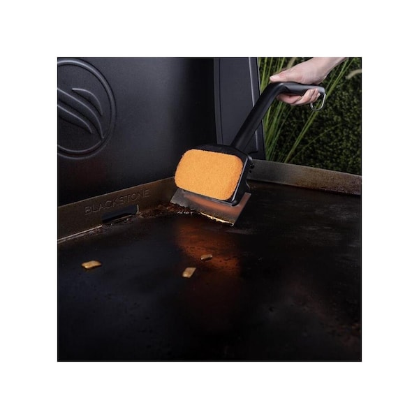 Keep your griddle spotless with Blackstone's Heavy Duty Scraper and Scrub Pad. This beast of a cleaning tool allows you to tackle stubborn food with the steel scraper and then treat your griddle top to a good clean with the durable scrub pad. Griddle maintenance is made easy with this one tool.