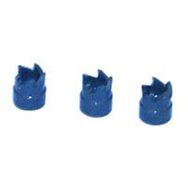 Features and Benefits: Blair s Double-End Spotweld Cutter with twice the tool life is the unique 3/8" diameter hardened and precision ground cutting tool that makes removing spot welded body panels fast and easy. Hollow design cuts around weld thus hardness does not affect tool sharpness. An adjustable depth rod sets the tool so only the outer panel is cut through leaving the underlying panel undamaged. Double-End Cutters are packaged in sets of three. When one end becomes dull simply unscrew the cutter from the arbor and reassemble with the new teeth exposed. With arbor for use in any 1/4" 3/8" or 1/2" chuck hand held drill.