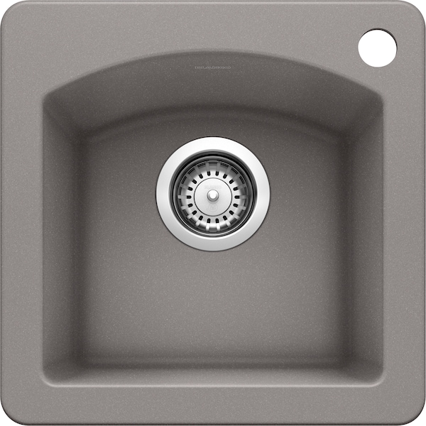 Diamond Bar Sink Silgranit, Metallic Gray, 1 bowl, Dual Mount, Granite Composite, 15" W x 15" L x