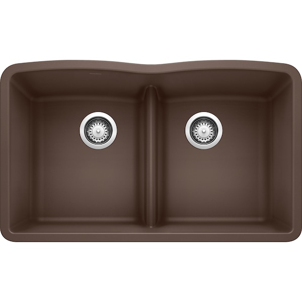 Diamond Silgranit 50/50 Double Bowl Undermount Kitchen Sink with Low Divide - Cafe
