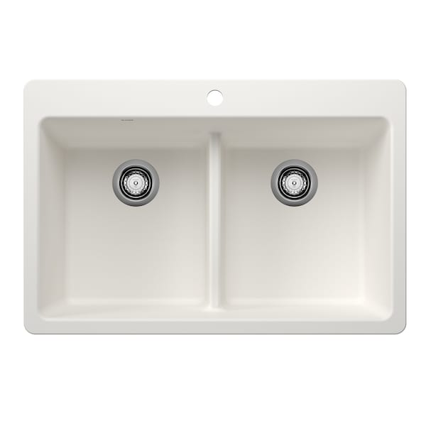 Liven SILGRANIT 33in 50/50 Double Bowl Dual Mount Kitchen Sink with Low Divide - White