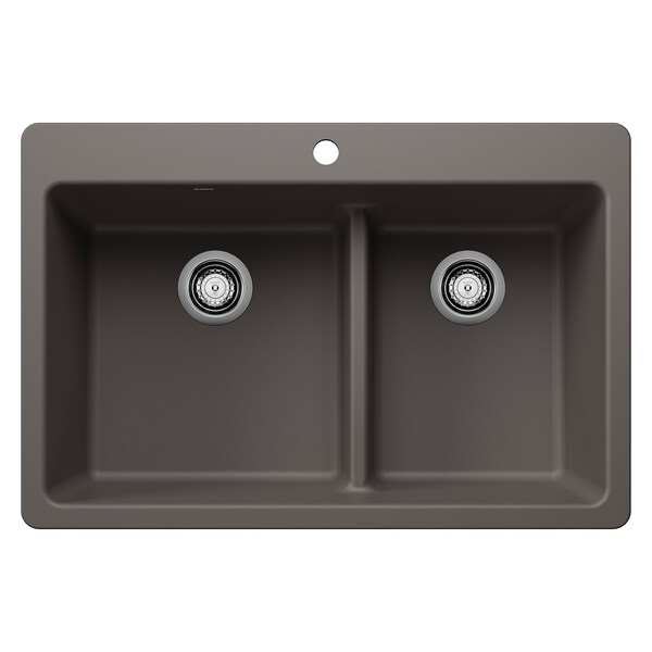 Every space deserves to be beautiful. BLANCOs LIVEN 33in 60/40 double bowl kitchen sink is ideal for multitasking; easily clean dishes in one bowl, while using the other for drying. The convenient low divide makes maneuvering large pots and pans a breeze. Made of SILGRANIT, LIVEN kitchen sinks are engineered to withstand heavy cookware and hot bakeware. SILGRANIT sinks are not only strong but also beautiful, available in a range of nature-inspired colors that effortlessly complement the latest kitchen trends. Combine the LIVEN double bowl sink with a BLANCO faucet and accessories to create a BLANCO UNIT; a seamlessly integrated kitchen solution designed to transform kitchen chores into joyful experiences. Everything you need to drink, prep and clean, all in one place.