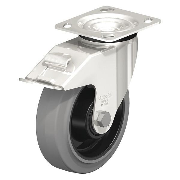 Swivel Plate Caster, Solid Rbber, 8", Brake