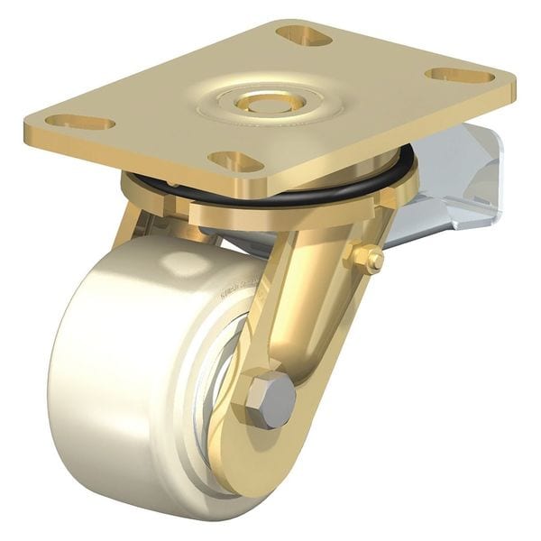 Swivel Plate Caster, Wht Nylon, 5", Brake, Caster Load Rating Range: Heavy-Duty