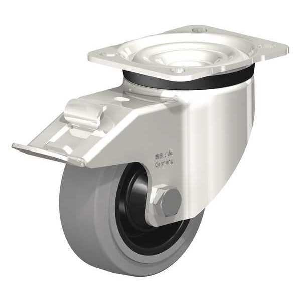 Swvl Plate Caster, Solid Rubr, 4", Brake