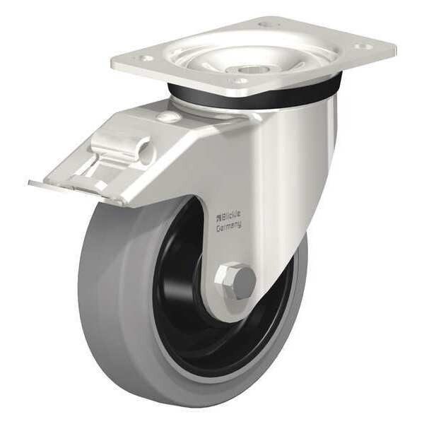 Swvl Plate Caster, Solid Rubr, 6", Brake