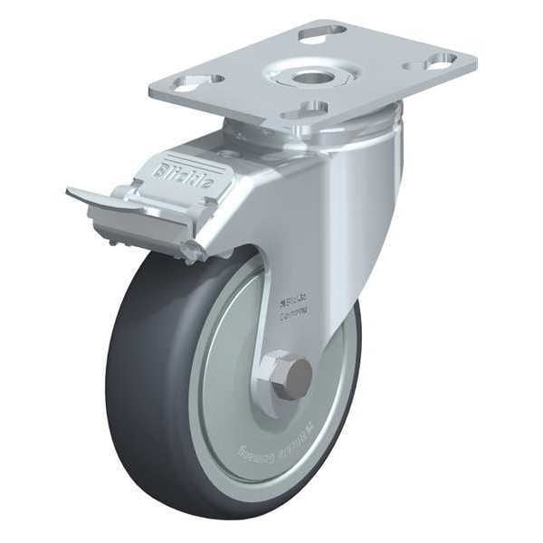 Swivel, Plate Caster, Wheel Dia. 4 in, Wheel Width 1 1/4 in, Wheel/Tread Material Rubber, Non-Marking Yes, Number of Wheels 1, Caster Brake Type Total Lock, Tread Shape Standard