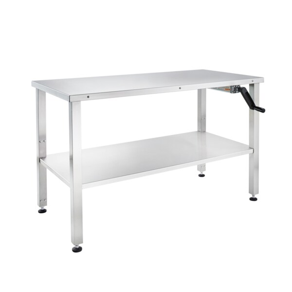 Manual height adjustment mechanism: hand crank positioned on the side of the table