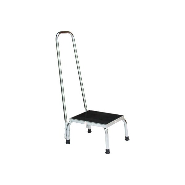 Blickman's 1250 chrome foot stool consists of one step 9 off the ground with non slip rubber treads and feet tips and a 35 3/4 tall front facing handrail. Parts also sold separately. features: one 9 step black non slip rubber treads & feet tips 35 3/4 tall front facing handrail no handrail