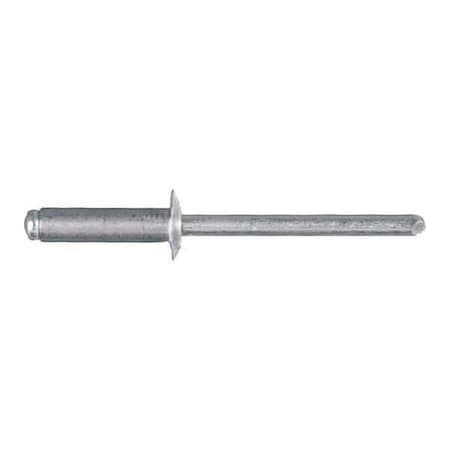 Blind Rivet, Dome Head, 1/4 in Dia., 19/32 in L, Aluminum Body, 100 PK